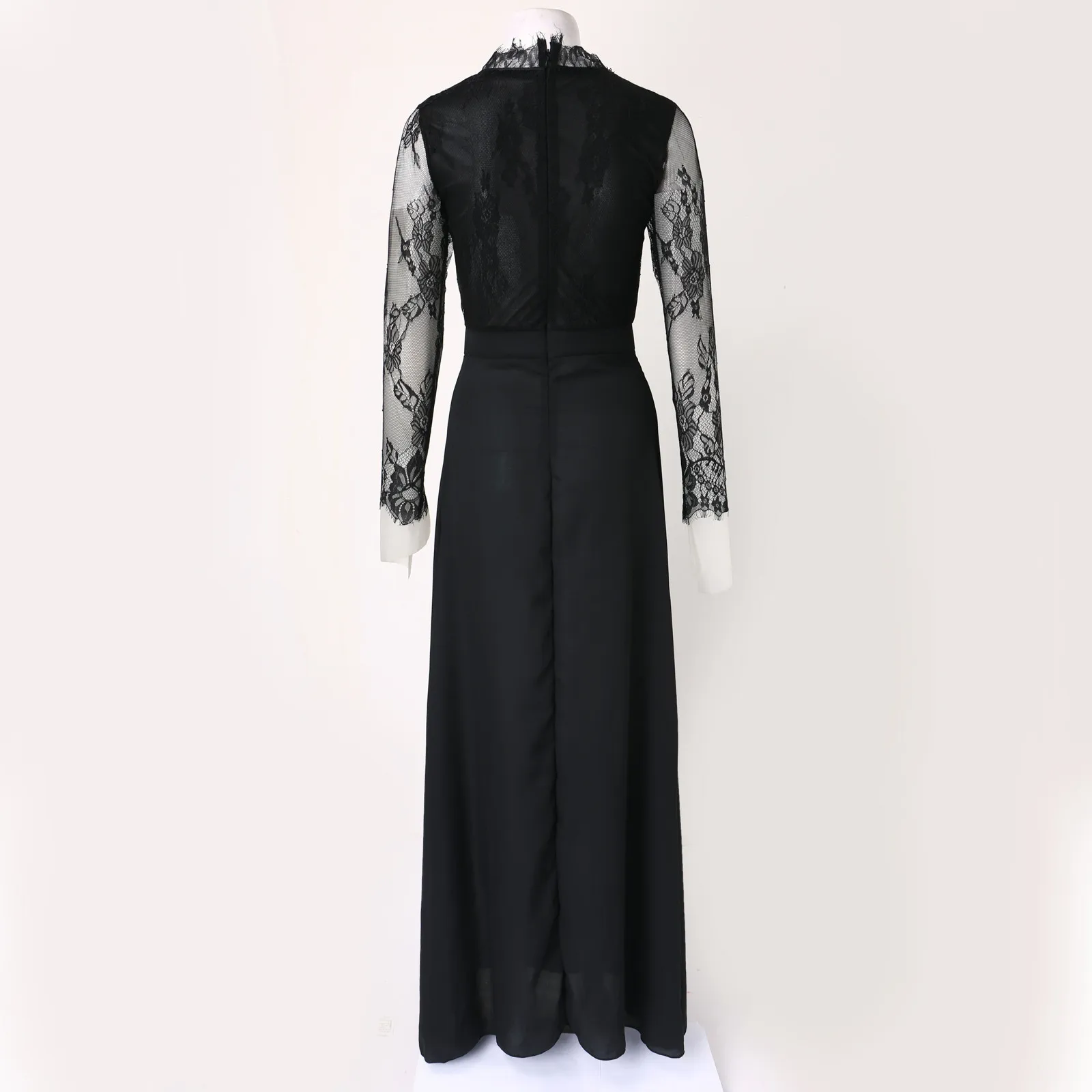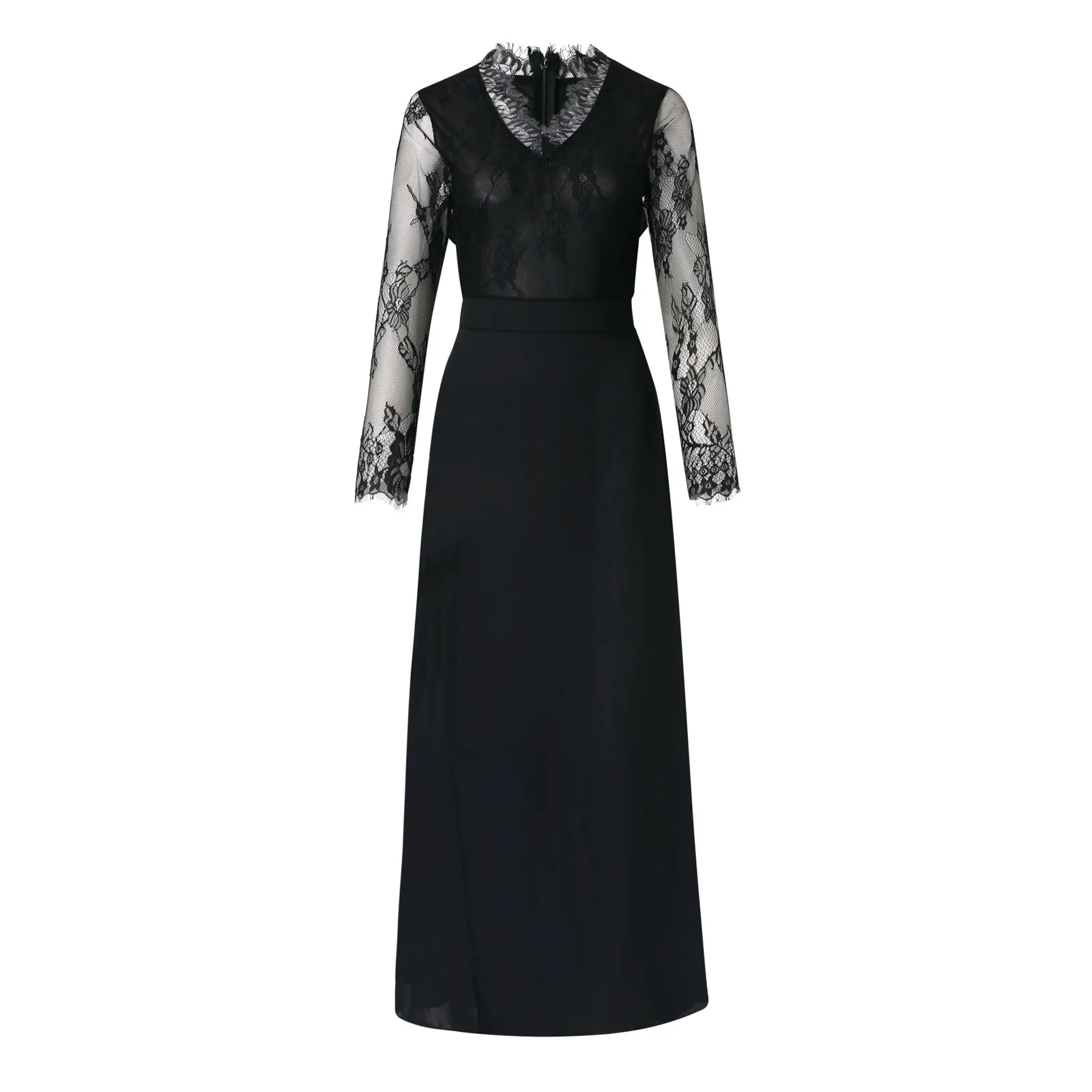 فستان طويل من الدانتيل الزهري للنساء بأكمام طويلة برقبة على شكل حرف V لوصيفة العروس فساتين حفلات الزفاف المسائية