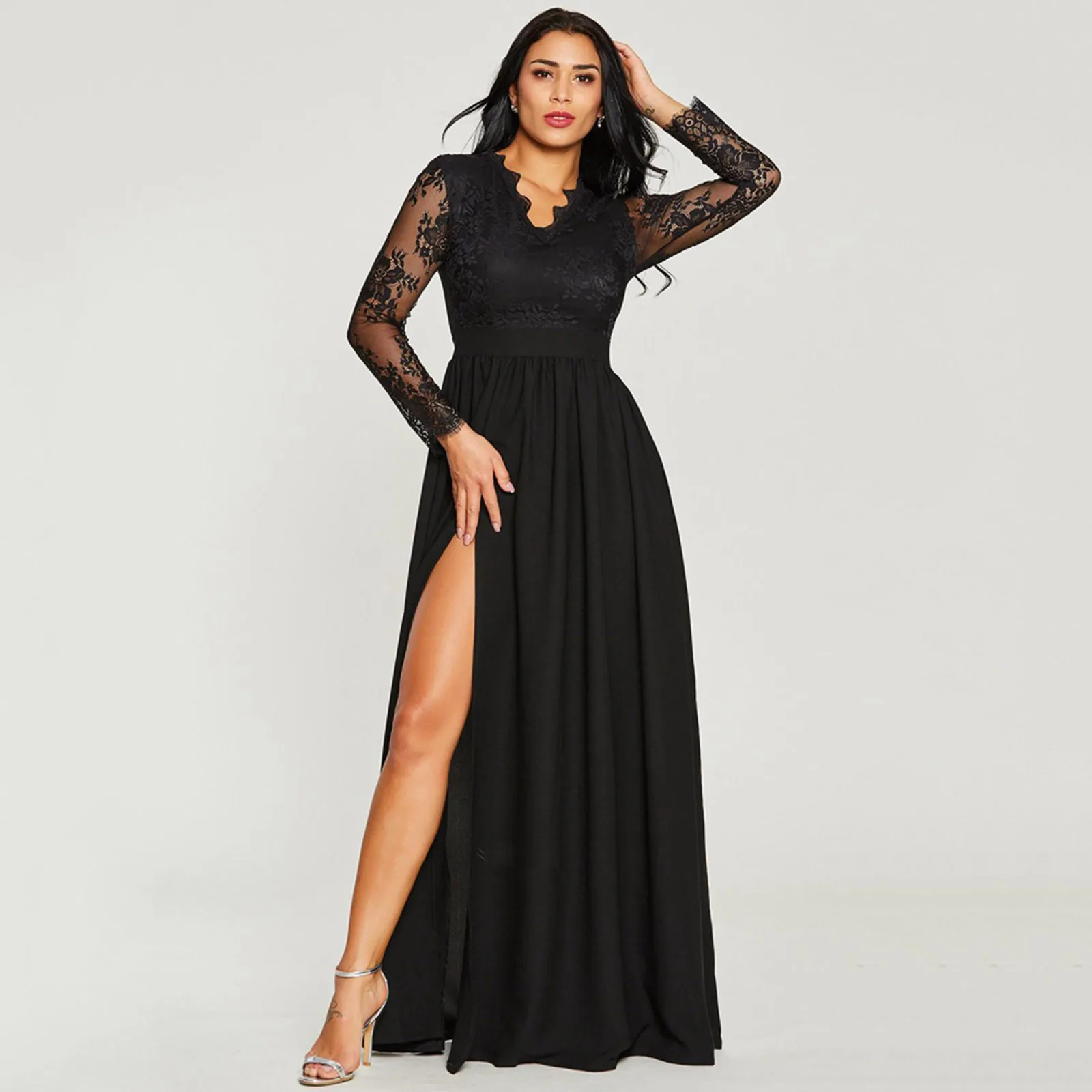 فستان طويل من الدانتيل الزهري للنساء ، كم طويل ، رقبة على شكل حرف V ، زفاف ، حفلة مسائية ، روب ، مقاس كبير ،